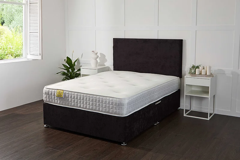 The Amalfi Memory Foam Open Coil Divan Bed with Storage is a smart divan bed with mattress that blends body-contouring comfort with practical under-bed storage. With a memory foam and open coil mattress on a sturdy upholstered storage base, it delivers a balanced “soft on top, supportive underneath” feel — ideal for keeping Edinburgh bedrooms calm, tidy and comfortable.